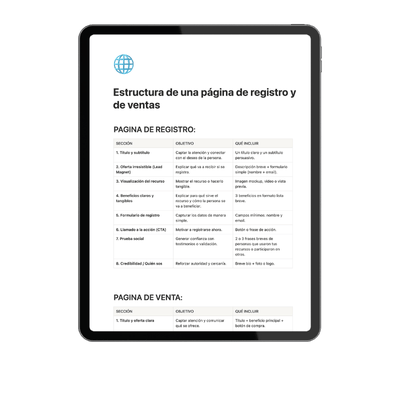 ESTRUCTURA DE UNA PÁGINA DE VENTAS Y UNA PÁGINA DE REGISTRO PARA QUE PUEDAS MONTARLA FACILMENTE
